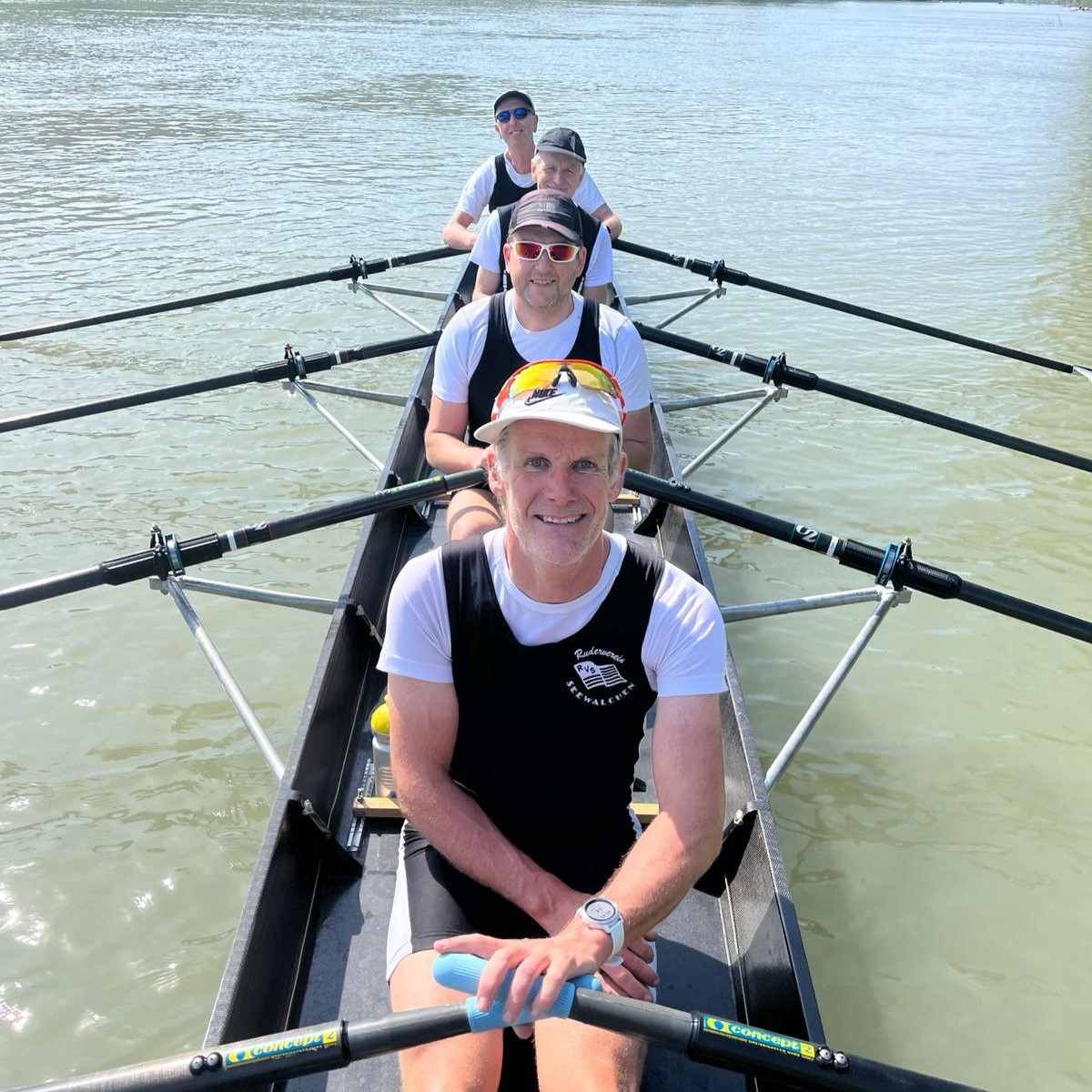 Für den Ruderverein Seewalchen gingen im Rennen 7 (Masters männlich B; Mindest-Durchschnittsalter: 36 Jahre) Gerald Aigner, Johannes Schmidt, Norbert Mair, Hans Kreuzer und Steuerfrau Eszter Hauer im Gig-Ruderboot an den Start. Sie gingen mit deutlichem Vorsprung als erster über die Ziellinie – eine Top-Leistung!